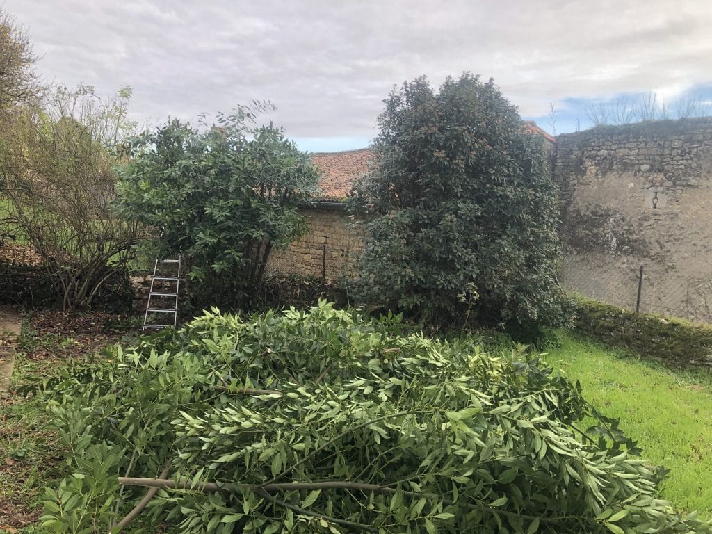 C’est qu’il était monté bien haut, le laurier, mais à coup de coupe-branche et de scie, le voila redescendu et tout rafraîchi.